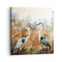 Vægur, Uret - To traner i et efterårsakvarellandskab - 30x30cm - Hvor skal vi hen om efteråret? - Moderne vægdekoration til stue, køkken og soveværelse ARTTOR