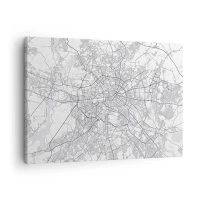 Lærredstryk - Billede på lærred - Detaljeret sort-hvidt bykort - 70x50cm - Berlins blomst - Moderne vægdekoration til stue og soveværelse ARTTOR