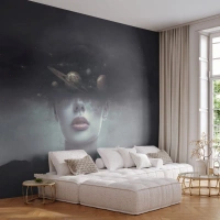 Fototapet Premium Sand - Og planeterne er ved at gå amok... - Abstraktion, Kvindens ansigt, Kosmos - 500x350 cm