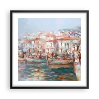 Plakat i ramme af lyst egetræ - Pastelfarvede helligdage - 50x50 cm