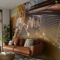 Fototapet Selvklæbende Deluxe Sticker - Et pust af luksus fra fortiden - Veteranbil, Automotive, Dashboard - 200x140 cm
