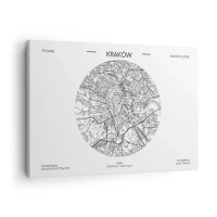 Lærredstryk - Billede på lærred - Et kort over Krakow i minimalistisk stil - 70x50cm - Krakows anatomi - Moderne vægdekoration til stue og soveværelse ARTTOR