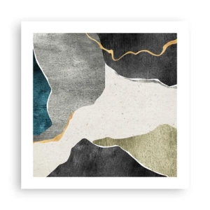 Plakat i hvid ramme - Mosaikkomposition med en streng af guld - 50x50 cm