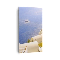Lærredstryk - Billede på lærred - Græsk landskab i hvid og blå - 45x80 cm