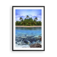 Plakat i sort ramme - En tropisk ø med et koralrev og eksotiske fisk. - 50x70cm - Den himmelske ø inviterer dig - Moderne vægdekoration til stue og soveværelse ARTTOR