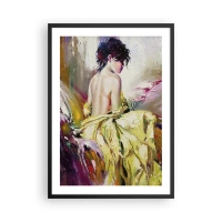 Plakat i sort ramme - Figuren af en kvinde i en gul kjole mod en malet baggrund - 50x70cm - Mellem munden og kanten af