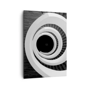 Plakat i sort ramme - En spiraltrappe i sort og hvid med et abstrakt design - 50x70cm - Til sagen - Moderne vægdekoration til stue og soveværelse ARTTOR