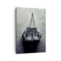 Plakat i sort ramme - Sorte boksehandsker hængende på en snor - 50x70cm - En tid med kamp og en tid med fred - Moderne vægdekoration til stue og soveværelse ARTTOR