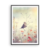 Plakat i sort ramme - Fugleportræt med en eng i baggrunden - 70x100 cm