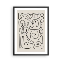 Plakat i sort ramme - Moderne abstraktion i form af en sort linje på en beige baggrund - 50x70cm - På sporet - Moderne vægdekoration til stue og soveværelse ARTTOR