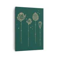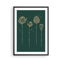 Plakat i sort ramme - Gyldne blomsterkonturer på en mørkegrøn baggrund - 50x70cm - Familien ZIÓŁkowski - Moderne vægdekoration til stue og soveværelse ARTTOR