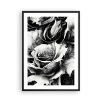 Plakat i sort ramme - En sort-hvid komposition af roser med udtryksfuldt chiaroscuro - 50x70cm - Altid dronning - Moderne vægdekoration til stue og soveværelse ARTTOR