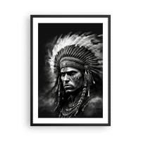 Plakat i sort ramme - Portræt af en kriger i traditionel fjerhovedbeklædning - 50x70cm - Leder og kriger - Moderne vægdekoration til stue og soveværelse ARTTOR