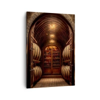 Plakat i sort ramme - Elegant vinkælder med træfade - 50x70cm - Atmosfærisk kælder - Moderne vægdekoration til stue og soveværelse ARTTOR
