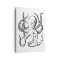 Plakat i sort ramme - Sort-hvid vintage blæksprutte illustration - 50x70cm - Dans med bølger - Moderne vægdekoration til stue og soveværelse ARTTOR