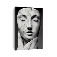 Plakat i sort ramme - Marmorskulptur ansigt med lukkede øjne på en sort baggrund - 50x70cm - Former af marmor - Moderne vægdekoration til stue og soveværelse ARTTOR