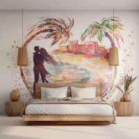 Fototapet Standard Eco - Romantisk ferie - Mennesker, Kokospalme, Strand - 450x315 cm