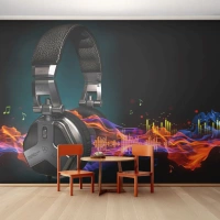 Fototapet på mål Standard Eco - I musikkens varme - Abstraktion, musik, Hovedtelefoner