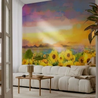 Fototapet Standard Eco - Selve solen er steget ned på jorden - Solsikkemark, solsikke, Natur - 300x210 cm