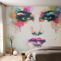 Fototapet Standard Eco - Portræt malet med en regnbue - Abstraktion, Kvindens ansigt, Stykke - 250x175 cm