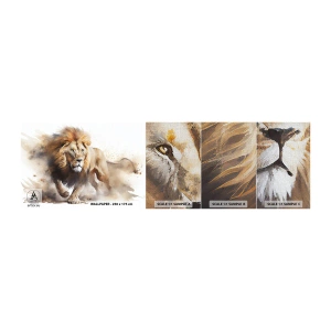 Prøve Fototapet Premium Canvas - Kongen er taget af sted - Løve, Lyse, Dyr - 100x30 cm