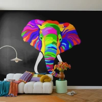 Fototapet Premium Canvas - Elefanten, der elskede at bade i regnbuen - Dyr, Elefant, Farverigt billede - 500x350 cm