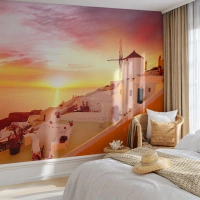 Fototapet Premium Canvas - Charmen af kystlandskabet - Arkitektur, Grækenland, Blomster - 450x315 cm