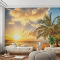 Fototapet Premium Canvas - Evig sommer, altid en ferie - Landskab, Strand, Kokospalme - 450x315 cm