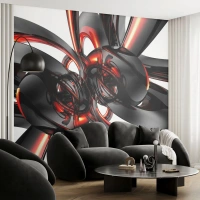 Fototapet Standard Eco - Bevægelse i grafit og rød - Abstraktion, 3D, Stykke - 150x105 cm