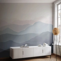 Fototapet Selvklæbende Deluxe Sticker - Bølger af bjerge - Abstraktion, Grafik, Bjerge - 500x350 cm