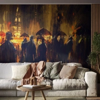 Fototapet Selvklæbende Deluxe Sticker - Tilhængere af regnen - By, Mennesker, Paraply - 500x350 cm