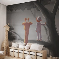 Fototapet Premium Sand - Det sker virkelig - Giraf, Børns, Drøm - 350x256 cm