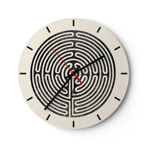 Vægur, Uret - En sort-hvid labyrint med et geometrisk layout på en lys baggrund - 30x30cm - Mystisk orden - Moderne vægdekoration til stue, køkken og soveværelse ARTTOR