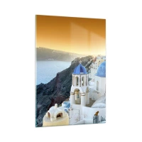 Billede på glas - Santorini - omfavnet af klipperne - 50x70 cm