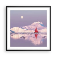 Plakat i sort ramme - Sejlets varme, isens kulde - 50x50 cm