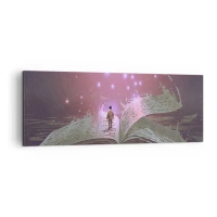 Lærredstryk - Billede på lærred - En invitation til en anden verden - læs den! - 140x50 cm
