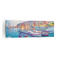Lærredstryk - Billede på lærred - En farverig aften i havnen - 160x50 cm