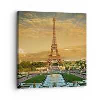 Lærredstryk - Billede på lærred - Eiffeltårnet i Paris ved solnedgang - 70x50cm - Dronningen af Paris - Moderne vægdekoration til stue og soveværelse ARTTOR