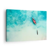 Lærredstryk - Billede på lærred - Både på turkisblåt vand set fra fugleperspektiv - 70x50cm - For på Zanzibars strande, når det overskydende vand... - Moderne vægdekoration til stue og soveværelse ARTTOR