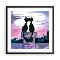 Plakat i sort ramme - Rendez-vous under månen - 60x60 cm