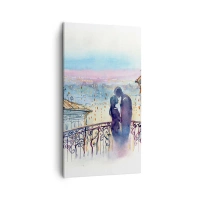 Lærredstryk - Billede på lærred - Parisiske elskere - 55x100 cm