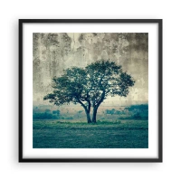 Plakat i sort ramme - Et æbletræ på en blå membran? - 60x60 cm