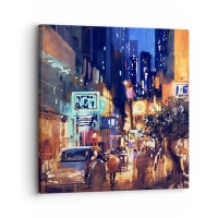 Lærredstryk - Billede på lærred - Og byen sover ikke - 50x50 cm