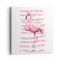 Lærredstryk - Billede på lærred - Flamingo på en lyserød baggrund i minimalistisk stil - 70x50cm - Med værdighed, om end i pink - Moderne vægdekoration til stue og soveværelse ARTTOR