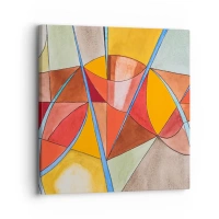 Lærredstryk - Billede på lærred - En abstrakt komposition i levende geometriske farver. - 70x50cm - Karrusel, karrusel af drømme - Moderne vægdekoration til stue og soveværelse ARTTOR