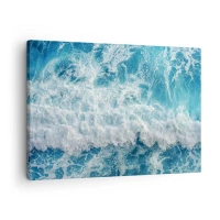 Lærredstryk - Billede på lærred - Dynamiske havbølger i blå nuancer - 70x50cm - Glædeligt og i spring - Moderne vægdekoration til stue og soveværelse ARTTOR