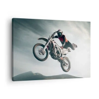 Lærredstryk - Billede på lærred - Motorcyklist i luften under et spring - 70x50cm - Ingen sjov uden risiko - Moderne vægdekoration til stue og soveværelse ARTTOR