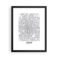 Plakat i hvid ramme - Kort over Londons labyrint - 40x30 cm