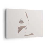Lærredstryk - Billede på lærred - Minimalistisk kontur af en kvindes ansigt i sarte beige toner - 70x50cm - Skabt af lys og skygge - Moderne vægdekoration til stue og soveværelse ARTTOR