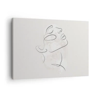 Lærredstryk - Billede på lærred - En minimalistisk skitse af et ansigt på en lys baggrund - 70x50cm - Skitse af drømmen - Moderne vægdekoration til stue og soveværelse ARTTOR